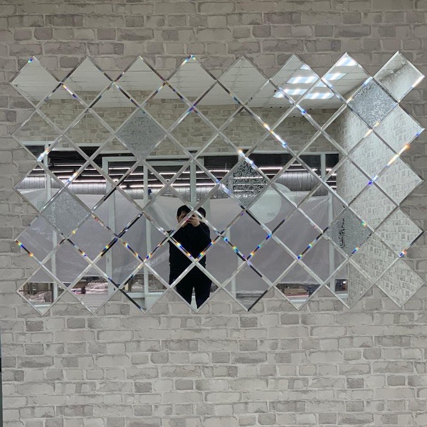 Использована серебристая квадратная зеркальная плитка 18х18.